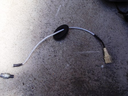 このセンサーコードはゴムのグローメットを通してエンジンルーム内に伸びています。